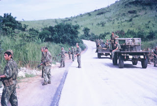...nestes frágeis Unimogues, onde havia um banco de madeira onde estavam sentados 12 operacionais, virados para cada lado da picada, nunca se sentou nenhum oficial do quadro militar ( profissionais), da mais baixa à mais alta patente e a razão é que consideravam estes " rapazes" suficientes para oferecer o "corpo às balas"... alguns deles, consideravam-se a "reserva intelectual" e a maior parte deles nunca saíram dos quartéis a COMEÇAR PELO COMANDANTE DA COMPANHIA - os V. Lourenços, os Otelo e dezenas de outros formados nas Academias Militares, nunca souberam o que era fazer uma saída para o mato ou arriscar na picada dum reabastecimento...mas souberam estar presentes quando os Milicianos lhes "roubavam os lugares" e por isso e não por outras razões desencadearam o 25 de Abril, onde hoje se pavoneiam outros "parasitas" do sistema... - os políticos laicos e certamente com ferimentos psicológicos quando estiveram encarcerados no Tarrafal em Cabo Verde, mas que se saiba nunca se sentaram num buraco feito por eles mesmo, para se safar das morteiradas...aparecem hoje, como se tivessem sido os verdadeiros heróis de "todas as guerras" da independência portuguesa.. é sabido que estes "heróis" tinham muito dinheiro para fugiram para Paris e se deslocarem a Londres quando quisessem, quando foram acossados e porquê, pela simples razão de que os tomates estavam bem guardados nas cuecas e eles nunca explicaram de onde lhe veio o fundo de maneio para fazerem a vida que faziam... os verdadeiros heróis não "desertam", combatem, oferecendo a sua própria vida àquilo que consideram a sua causa...Mandela e muitos outros empenharam à causa a sua própria existência física... Ramalho Eanes, poderia ter sido um verdadeiro herói, mas por razões que se desconhecem não " alinhou"... outros bem mais oportunistas ocuparam-lhe o lugar...